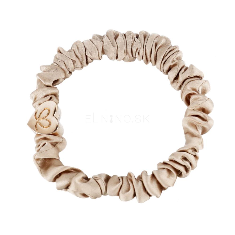 By Eloise London Skinny Silk Scrunchie Gold Heart Gumička na vlasy pre ženy 1 ks Odtieň Sand