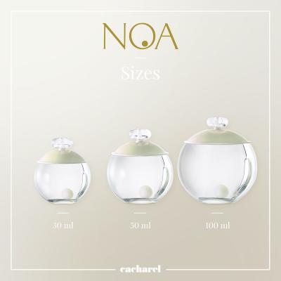 Flakón Noa symbolizuje perlu, ktorá evokuje večnosť života a otvorenosť. Guľôčka vnútri symbolizuje srdce, ktoré blúdi a hľadá mier na zemi. Pivonky a ruže v náručí zelených listov si spokojne plávajú po hladine teplej kávy s kvapkou smotany. Noa je jemná, čistá, biela kvetinová vôňa s krémovým podtónom.