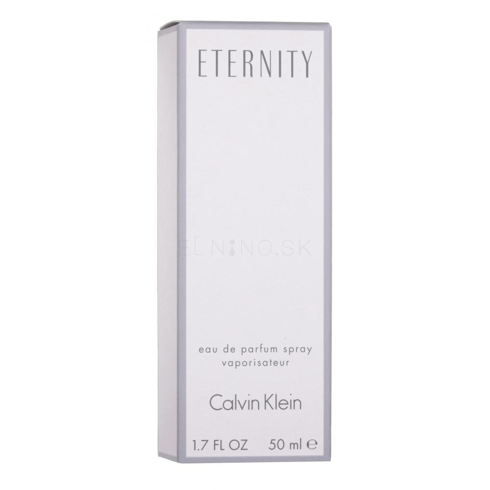 Parfém Calvin Klein Eternity je romantická kytica jemných rastlinných motívov, zmiešaných s vôňami lesa a zelenými tónmi. K vytvoreniu vône Eternity for Women inšpirovalo Calvina Kleina manželstvo s asistentkou Kelly Rectorovou. K oslave tohto zväzku Calvin daroval Kelly krásny snubný prsteň, ktorý bol pôvodne darom kniežaťa Windsora pre milovanú kňažnú. Na prostom prstienku pokrytom diamantmi bolo vyryté jedno slovo - ETERNITY - večnosť - ideálny symbol trvalej lásky a oddanosti. Teraz táto myšlienka žije naďalej v romantickej vôni Calvin Klein Eternity.