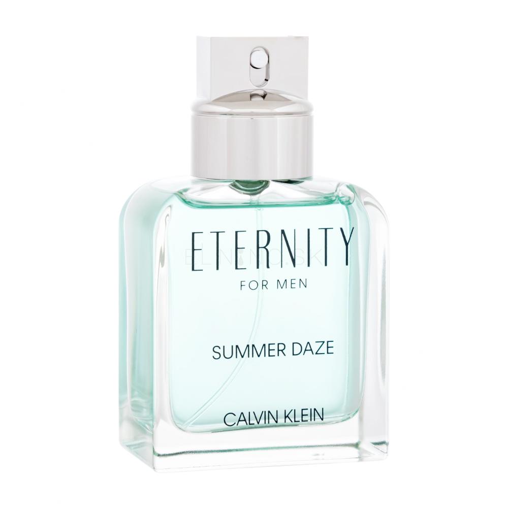 Nekonečnú morskú sviežosť a jednotu s prírodou odráža každým svojím detailom pánska toaletná voda Calvin Klein Eternity Summer Daze (2022). Voňavá tekutina obsahuje vyvážený mix energií: oranžovú z mandarínky, fialovú z levandule a zelenú z mäty. Je to presne ten typ vône, ktorá zanechá v miestnosti sexy stopu, takže sa prítomní budú veľmi zaujímať o jej pôvodcu. Doprajte si pocit výnimočnosti s fantastickou letnou toaletkou Eternity Summer Daze!