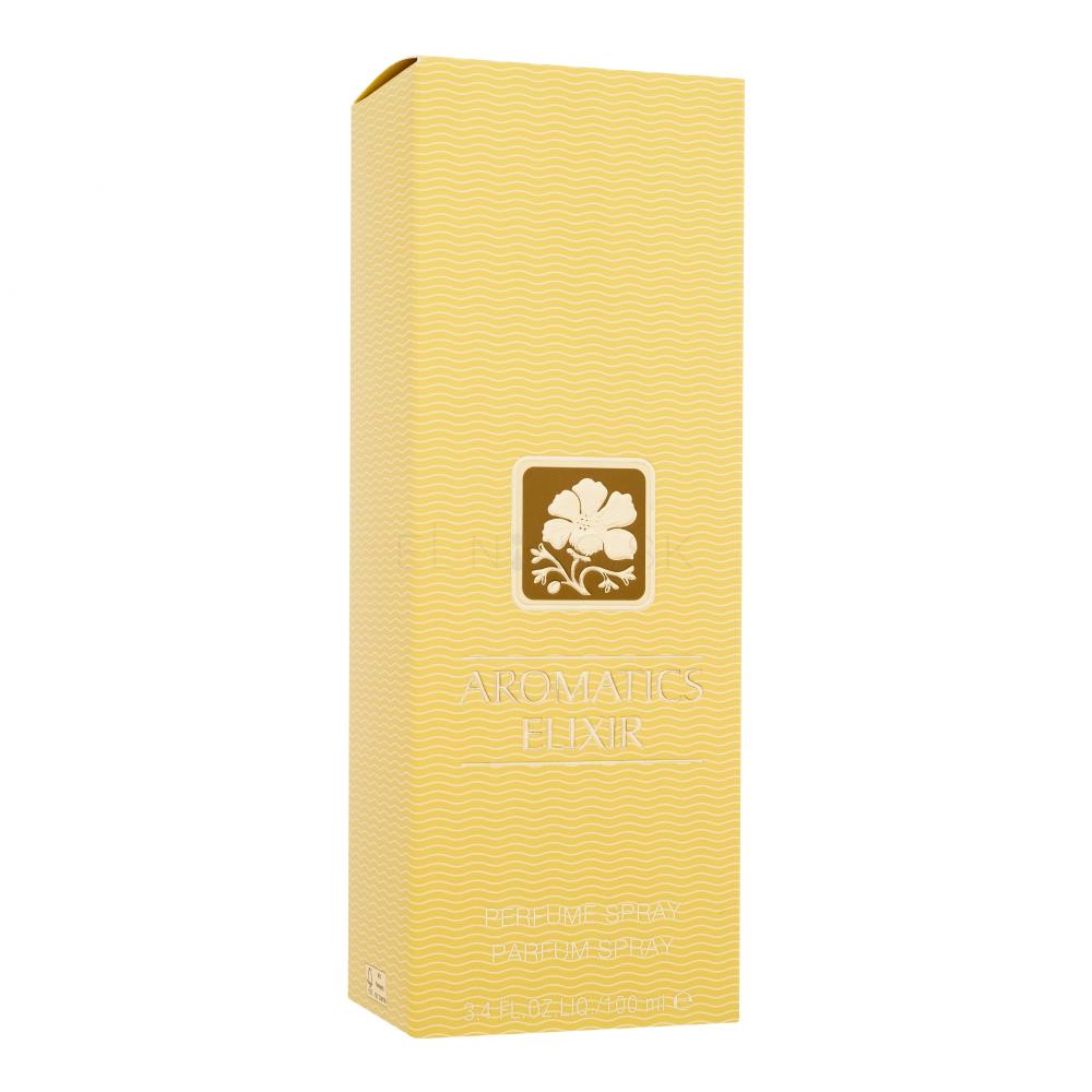 Aromatics Elixir je vôňa pre sebavedomú zrelú ženu, ktorá ju unesie. Aromatics Elixir je klasifikovaná ako chypre-kvetinová vôňa. Prvý závan je pomerne ostré chypre, ale nenechajte sa odradiť, za malú chvíľu sa vôňa krásne rozloží. Potom prídu k slovu ruže - temné, tmavočervené, jazmín a pačuli. Kamilky dodávajú vôni jemný bylinný podtón.