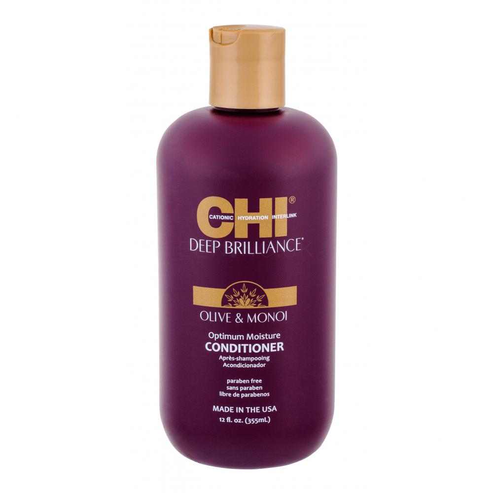 Kondicionér Farouk Systems CHI Deep Brilliance Optimum Moisture je výborným pomocníkom pri starostlivosti o suché a poškodené vlasy v dôsledku chemických zákrokov. Vďaka obsahu olivového a monoi oleja vlasy intenzívne hydratuje a vyživuje, kokosový olej a kvet tiaré vlasy posilňujú a chráni pred ďalším poškodením.