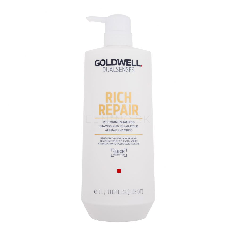 Šampón Goldwell Dualsenses Rich Repair poskytuje suchým a lámavým vlasom hĺbkovú regeneráciu, zaisťuje ich prirodzený lesk a správnu pružnosť. Pri farbených vlasoch navyše chráni farbu proti vymývaniu.