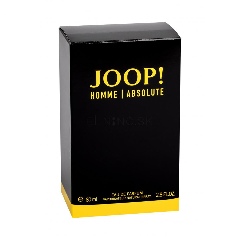 Štýlovým čiernym flakónikom s nápaditým žltým nápisom sa prezentuje parfumovaná voda JOOP! Homme Absolute, moderná orientálna fougere vôňa pre gentlemana od špiku kostí. V roku 2019 ju zostavil zručný parfumér Antoine Maisondieu a propagácie sa ujal model Francisco Lachowski. Parfumovanú vodu Homme Absolute môžete nosiť celoročne, iba s výnimkou horúceho leta, počas denných a večerných príležitostí. Keď si zvyknete mať ju stále pri sebe, onedlho sa stane vašou druhou pokožkou...