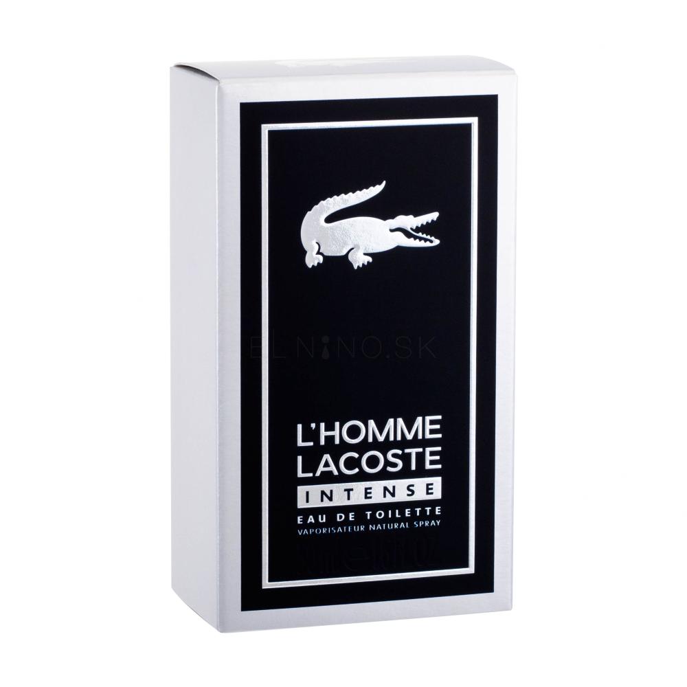Je štýlová, okúzľujúca, jemne dráždivá... Toaletná voda Lacoste L'Homme Lacoste Intense poskytuje dnešnému mužovi všetko, čo si žiada. Na trh vstúpila v roku 2018 ako silnejšia verzia originálnej vône L'Homme Lacoste z roku 2017. Dielo parfuméra Michela Girarda láka množstvom voňavých akordov, medzi nimi sa presadzuje rebarbora, dula, zázvor a pomaranč. Elegantný tmavý flakón zdobí strieborný aligátor, tradičné logo značky Lacoste. Toaletnú vodu L'Homme Lacoste môžete použiť pri akejkoľvek príležitosti. Skvelo doladí váš štýl pri pracovných aj voľnočasových aktivitách.