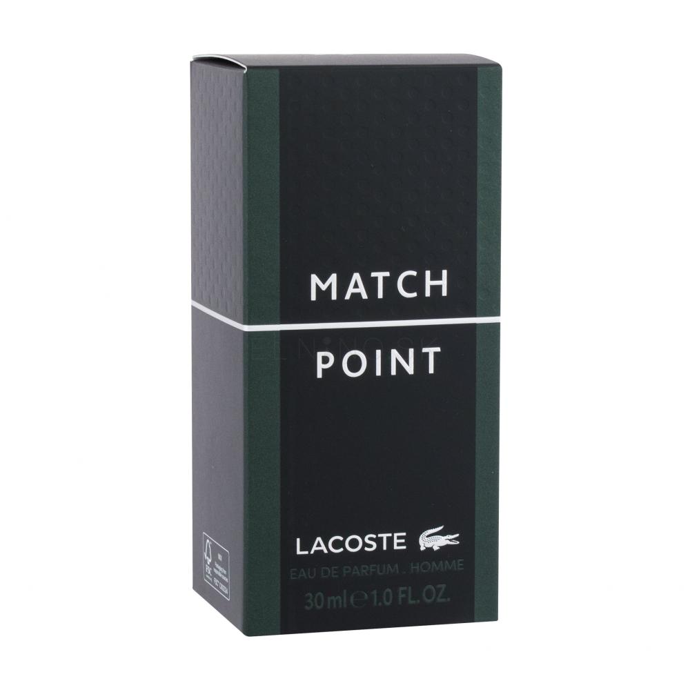 Parfumovaná voda Lacoste Match Point je „parťáčkou" rovnomennej toaletnej vody z roku 2020. Určite sa oplatí mať po ruke obidve. Ich flakóny využívajú dizajnové prvky z tenisových zápasov. Toaletná voda je svetlejšia, sviežejšia, vhodná skôr na deň, zatiaľ čo tmavšiu, intenzívnejšiu parfumovanú vodu vynosíte k slávnostnejším príležitostiam. Francúzska značka Lacoste má dobrý zvuk po celom svete. Vyrába mladistvé parfumy, oblečenie, topánky, kožené produkty či hodinky. Aktívni muži si často vyberajú vône v sériách Essential, Red, Pour Homme, Elegance... a ženy v sériách Inspiration, Pour Femme alebo Touch of Pink.