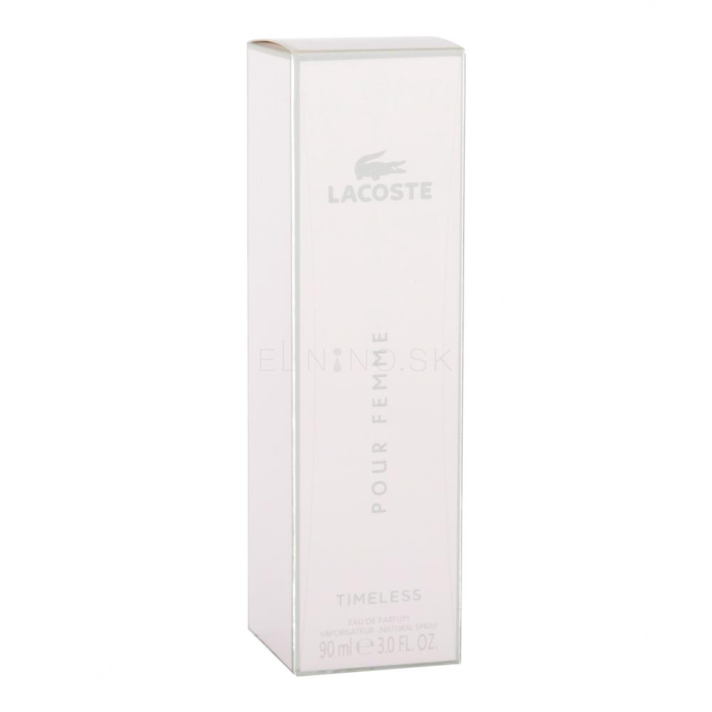 Chcete rafinovane podčiarknuť svoje ženské kúzlo? Parfumovaná voda Lacoste Pour Femme Timeless (2019) to dokáže v akýchkoľvek podmienkach. Stavte na ňu a určite vám dáte za pravdu. Vôňa Lacoste Pour Femme Timeless prepája láskyplné biele kvetiny, citrusy a vzácne drevá, s ktorými sa snúbia zvodné korenisté a živicové akordy. Patrí do veľmi žiadanej orientálno-kvetinovej kategórie dámskych vôní. Vynosíte ju celoročne, avšak, najlepšie sa rozvinie počas slnečných jarných a letných dní.