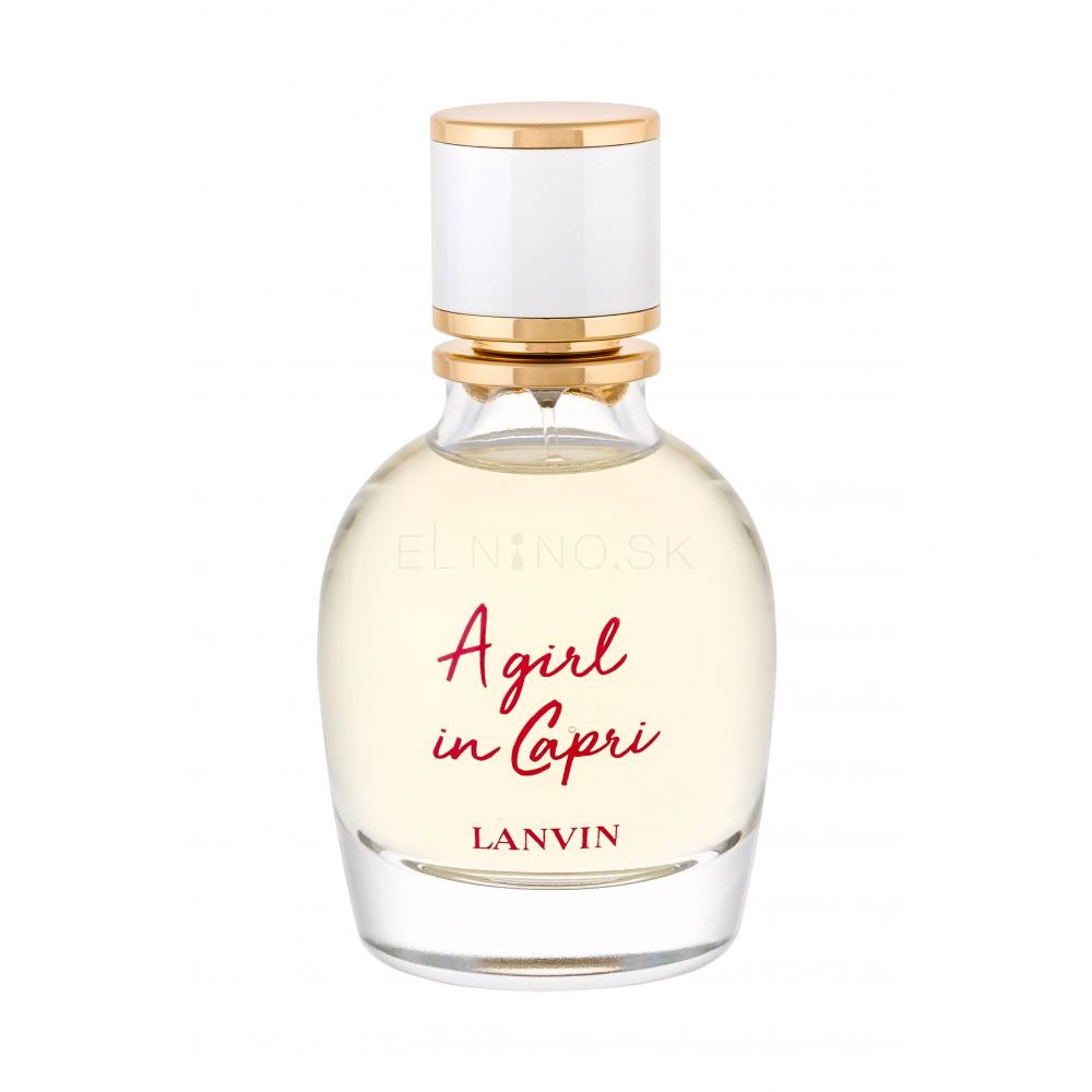 Toaletná voda Lanvin A GIrl in Capri je mladistvá cutrusová morská vôňa z dielne slávnej parfumérky Sophie Labbe. Na svetové trhy vstúpila na jar v roku 2019 ako predzvesť nasledujúcej letnej dovolenky plnej slnka a dobrej nálady. Je k dispozícii v objeme 30, 50 a 90 ml, takže si môžete zaobstarať väčšie domáce aj menšie cestovné balenie. Moderný oblý flakónik v zlatistých a bielych tónoch je krásny na pohľad aj praktický do ruky. Staňte sa v lete „Dievčaťom na Capri“!
