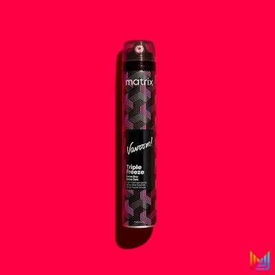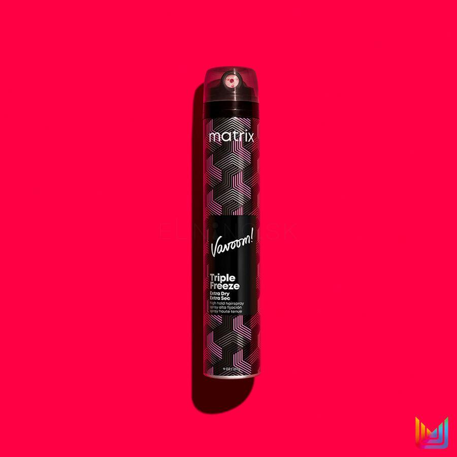 Lak na vlasy Matrix Vavoom Triple Freeze Extra Dry sa vyznačuje extra silnou fixáciou a rýchloschnúcou receptúrou, ktorá zároveň zabraňuje nevzhľadnému krepovateniu vlasov.