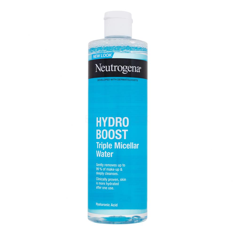 Micelárna voda Neutrogena® Hydro Boost Triple Micellar Water má zloženie obohatené o tri druhy micelárnych molekúl, z ktorých každá má iný účinok. Vďaka tomu odstraňuje z pleti všetky nečistoty a vodoodolný make-up veľmi ľahko a bez podráždenia. Zároveň pomocou kyseliny hyalurónovej dodáva pleti veľkú dávku hydratácie.