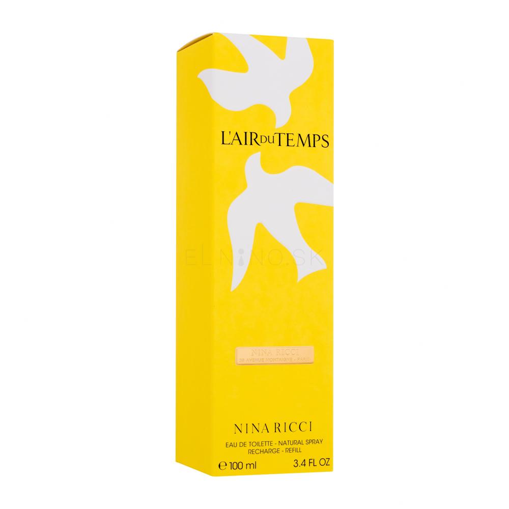 Toaletná voda Nina Ricci L'Air Du Temps je tradičná, veľmi ženská elegantná vôňa s dlhou výdržou. Pre jednu z mnohých nadšených užívateliek je to očarujúca karafiátová vôňa s klinčekovým akordom, ktorá má takmer anjelskú auru. Najkrajšia je vraj na jar a v lete. Nadčasová toaletná voda L'Air Du Temps, decentná a napriek tomu plná vášne, zdôrazní vaše ženské čaro cez deň aj večer.