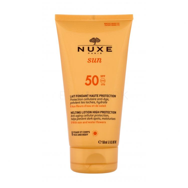 Opaľovacie mlieko na telo a tvár NUXE Sun High Protection Melting Lotion SPF50 zahalí vašu pokožku do neviditeľného závoja, ktorý jej poskytne vysoký stupeň ochrany pred UV žiarením, dostatok hydratácie a zabráni jej predčasnému starnutiu.
