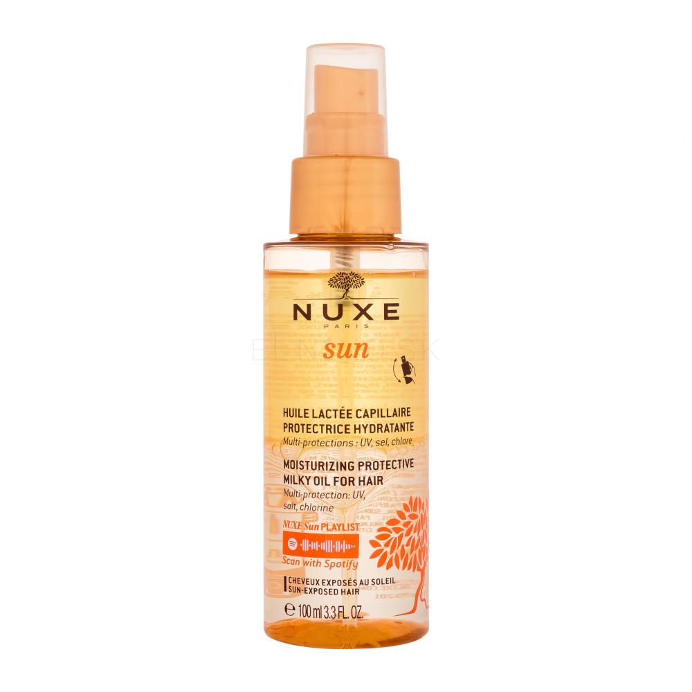 Multi-ochranný mliečny olej NUXE Sun Milky Oil Spray s obsahom kokosového oleja a extraktu z havajských rastlín poskytuje vlasom ochranu proti UV žiareniu, soli a chlóru. Navyše vlasy regeneruje a hydratuje.
