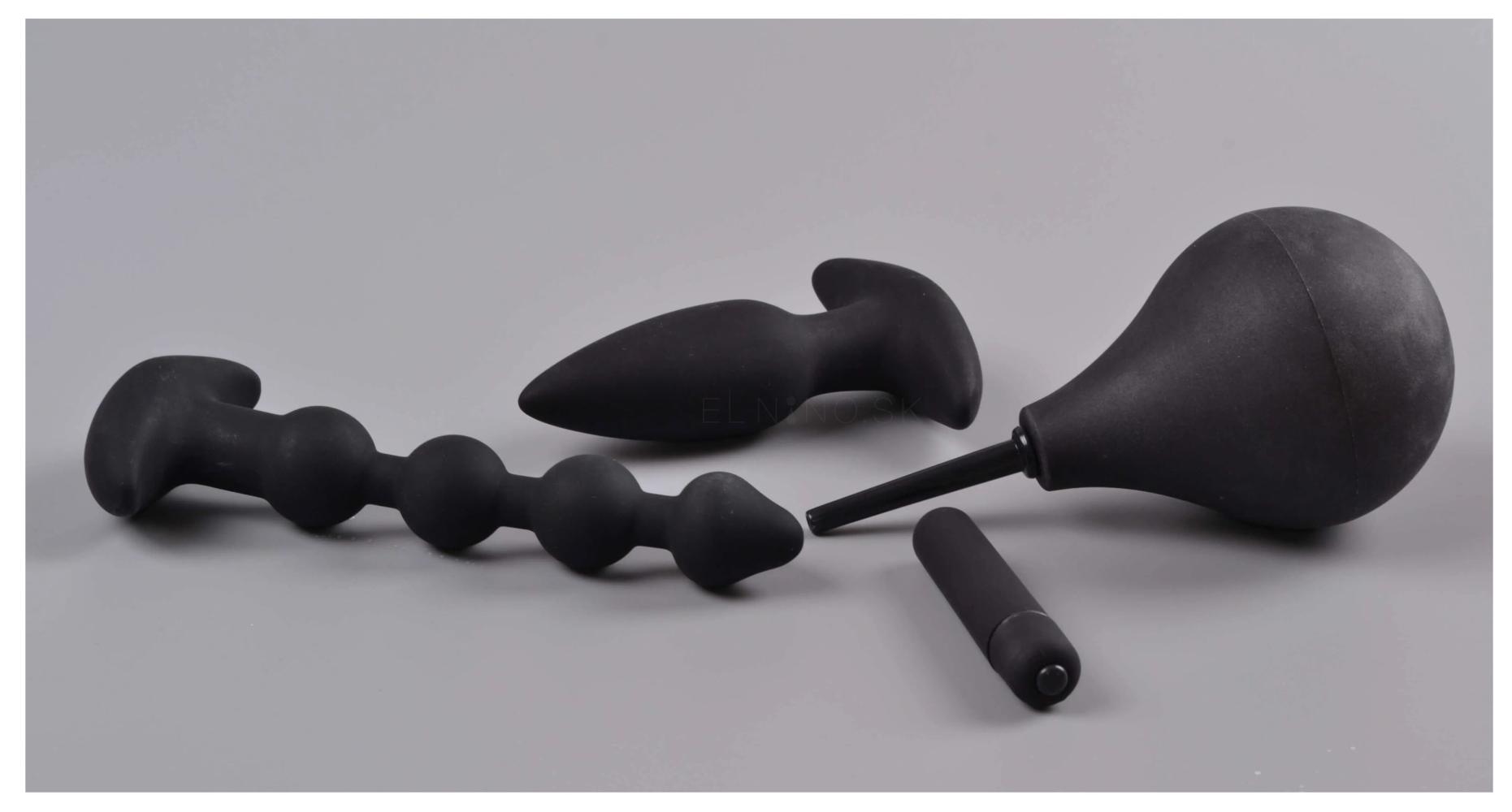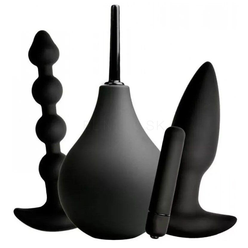 You2Toys Black Velvets Anal Kit Súprava análnych pomôcok análny kolík + análne guličky + klystír + odnímateľná vibračná patróna